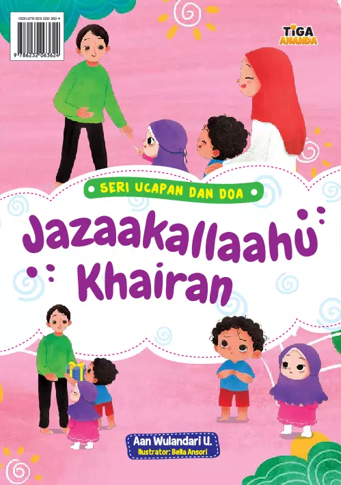 Sinopsis Buku: Buku ini menceritakan kisah tentang Adya dan Syila, dua anak yang dengan antusias menunggu Ayah pulang kerja. Saat Ayah tiba, mereka memberinya hadiah yang telah mereka siapkan. Ayah dengan tulus mengucapkan terima kasih, namun ucapan itu tidak biasa. Ia mengucapkan, “Jazaakallaahu khairan,” yang membuat Adya dan Syila terkejut dan penasaran. Dari situ, mereka mulai memikirkan makna dari ucapan tersebut dan menyadari bahwa itu adalah bentuk ucapan terima kasih dalam bahasa Arab yang penuh makna. Dalam buku ini, juga disampaikan sebuah hadis yang menjelaskan bahwa ucapan “Jazaakallaahu khairan” adalah bentuk pujian yang sangat tinggi, karena dengan mengucapkannya, seseorang memberikan kebaikan kepada orang lain dan memohon kebaikan dari Allah. Buku ini tidak hanya mengajarkan nilai-nilai kebaikan dan rasa syukur, tetapi juga memperkenalkan ucapan-ucapan dalam bahasa Arab yang memiliki makna mendalam dalam konteks kehidupan sehari-hari. Selain itu, buku ini juga menggambarkan interaksi yang hangat antara anak-anak dengan orang tua, serta pentingnya komunikasi dan penghargaan terhadap kebaikan yang dilakukan orang lain. Dengan bahasa yang sederhana dan cerita yang menarik, buku ini cocok untuk anak-anak dan menjadi sarana pembelajaran nilai-nilai keagamaan dan sosial yang bermanfaat.