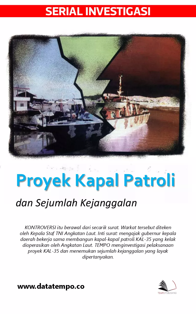 KONTROVERSI itu berawal dari secarik surat Warkat tersebut diteken oleh Kepala Staf TNI Angkatan Laut Inti surat mengajak gubernur kepala daerah bekerja sama membangun kapal kapal patroli KAL 35 yang kelak dioperasikan oleh Angkatan Laut TEMPO menginvestigasi pelaksanaan proyek KAL 35 dan menemukan sejumlah kejanggalan yang layak dipertanyakan
