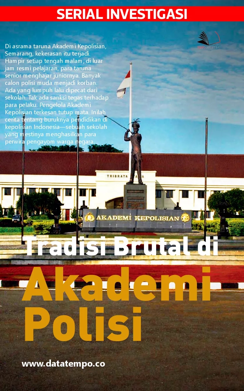 Di asrama taruna Akademi Kepolisian Semarang kekerasan itu terjadi Hampir setiap tengah malam di luar jam resmi pelajaran para taruna senior menghajar juniornya Banyak calon polisi muda menjadi korban Ada yang lumpuh lalu dipecat dari sekolah Tak ada sanksi tegas terhadap para pelaku Pengelola Akademi Kepolisian terkesan tutup mata Inilah cerita tentang buruknya pendidikan di kepolisian Indonesia sebuah sekolah yang mestinya menghasilkan para perwira pengayom warga negara
