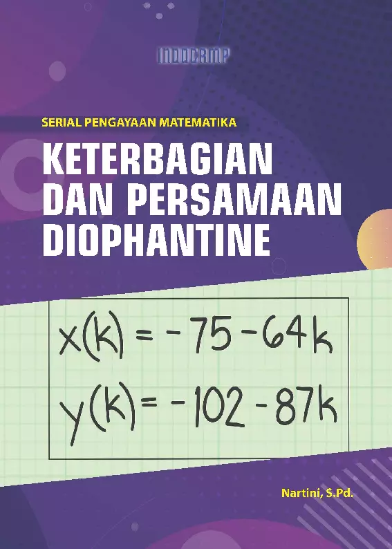Buku ini menjelaskan tentang Keterbagian dan Persamaan Diophantine yang merupakan salah satu materi dalam OSN Olimpiade Sains Nasional yang nantinya diubah menjadi KSN Kompetensi Sains Nasional tingkat SMP Materi keterbagian dalam kurikulum pembelajaran tatap muka di sekolah tidak langsung diajarkan secara mendetail padahal soal soal yang terkait keterbagian selalu muncul dalam setiap event perlombaan Untuk membantu para siswa yang gemar matematika dan suka tantangan dalam berselancar mengasah otak Penulis berupaya menjembatani materi Keterbagian dan Persamaan Diophantine beserta latihan latihanya untuk dikaji lebih dalam dan memperluas khazanah keilmuan dalam matematika