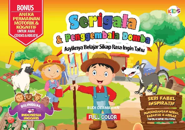 Sinopsis Buku: Buku ini adalah bagian dari seri fabel inspiratif yang dirancang untuk mengembangkan moral, karakter, dan akhlak anak melalui kisah-kisah yang menarik dan mudah dipahami. Dalam buku ini, terdapat cerita tentang seorang petani dan istrinya yang memiliki sekelompok domba. Suatu hari, serigala menghabiskan semua domba, hanya tersisa satu domba. Domba tersebut mendengar rencana keluarga petani untuk menjualnya dan memutuskan untuk pergi ke tempat yang bebas dari ancaman. Domba tersebut pergi bersama anjing penjaga pada malam hari, tetapi serigala tetap tertarik untuk mendapatkan domba tersebut. Serigala mencoba menipu domba dengan meminta kembali mantel yang pernah dipinjam minggu sebelumnya, namun rencananya justru terbongkar. Cerita ini mengandung pesan moral bahwa berpikiran pendek dan tidak memiliki rasa ingin tahu akan membuat seseorang terjebak dalam hal yang tidak menyenangkan. Buku ini juga dilengkapi dengan latihan matematika yang dirancang untuk melatih kemampuan berhitung anak, serta aktivitas kreatif seperti mewarnai binatang. Dengan gaya bahasa yang sederhana dan kisah yang penuh makna, buku ini sangat cocok untuk membimbing perkembangan kepribadian dan kognitif anak.