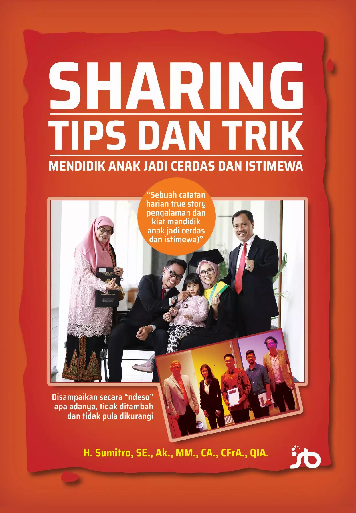 Sharing kami bermaksud berbagi apa yang kami lakukan dan yang kami alami dalam mendidik anak anak kami semoga apa yang kami alami ini akan bermanfaat bagi pembaca buku ini Tips saran atau nasihat kepada pembaca buku untuk melakukan sesuatu yang memberikan arah atau saran untuk mengambil keputusan atau tindakan juga persediaan kesabaran para orang tua dalam mendidik anak anak tercinta Trik cara mudah atau alternatif akal cara daya kiat kunci muslihat rahasia resep siasat strategi taktik untuk melakukan sesuatu untuk mempermudah pembaca buku ini bagaimana mendidik anak anak agar menjadi cerdas dan istimewa