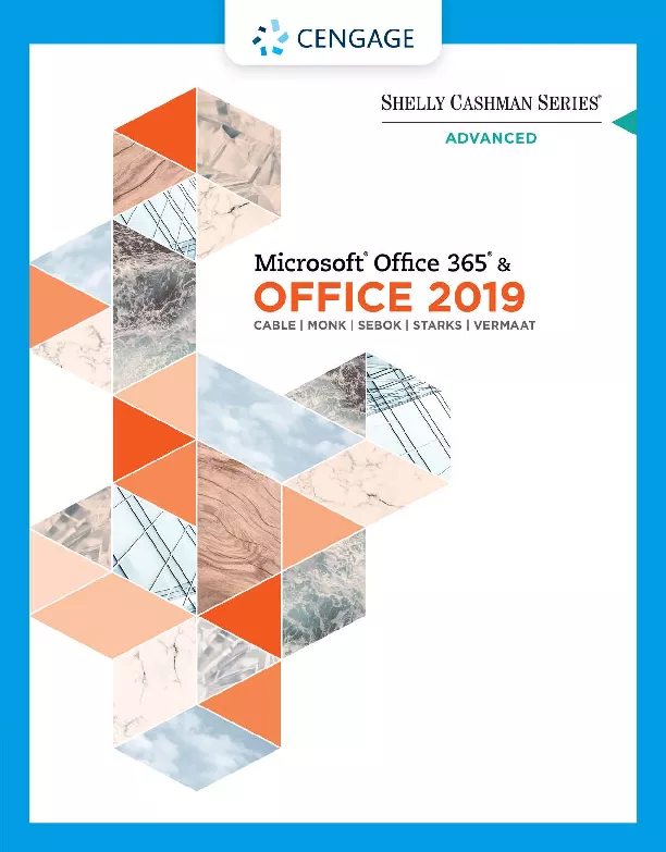 Introduce your students to the important new features that the latest version of Microsoft Office has to offer with the focused approach found in Cable Freund Monk Sebok Starks Vermaat s MICROSOFT Office 365 OFFICE 2019 ADVANCED Part of the acclaimed Shelly Cashman Series this edition continues the series strong history of innovation with an enhanced learning approach designed to engage students improve retention and prepare learners for success with Microsoft Office A trademark step by step screen by screen approach encourages students to expand their understanding of the software through experimentation critical thought and personalization while also engaging them in real world scenarios to reinforce critical skills to make them successful in their educational and professional careers In addition MindTap and updated SAM Skills Assessment Manager online resources are available to guide additional study and ensure successful results