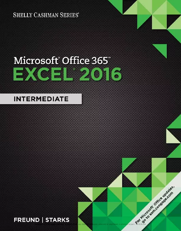 Discover the latest advancements in Microsoft Excel 2016 with MICROSOFT OFFICE 365 EXCEL 2016 INTERMEDIATE the new edition in today s generation of acclaimed Shelly Cashman Series books For more than three decades the Shelly Cashman Series has effectively introduced computer skills to millions MICROSOFT OFFICE 365 EXCEL 2016 INTERMEDIATE continues the Series strong history of innovation with a proven learning approach enhanced to address the learning styles of students like you A trademark step by step screen by screen approach encourages you to expand your understanding of Microsoft Excel 2016 through experimentation critical thought and personalization This new edition delivers effective educational materials specifically designed to engage improve retention and prepare you for future success in working with both basic and more advanced Microsoft Excel 2106 skills