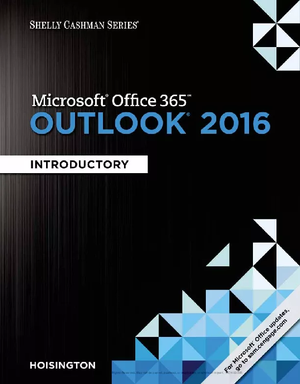 Discover the latest advancements that Microsoft Outlook 2016 has to offer with MICROSOFT OFFICE 365 OUTLOOK 2016 INTRODUCTORY the new edition in today s generation of acclaimed Shelly Cashman Series books For more than three decades the Shelly Cashman Series has effectively introduced advanced computer skills to millions of students like you MICROSOFT OFFICE 365 OUTLOOK 2016 INTRODUCTORY continues the Series strong history of innovation with a proven learning approach enhanced to address your needs no matter what your learning style A trademark step by step screen by screen approach encourages you to expand your understanding of Microsoft Outlook 2016 through experimentation critical thought and personalization This new edition and accompanying resources deliver effective educational materials specifically designed to effectively introduce basic and new features improve retention and prepare you for future success with the latest Microsoft Outlook 2016