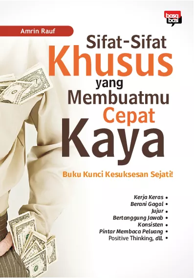 Untuk menjadi orang sukses dengan limpahan kekayaan dan kesejahteraan yang diimpikan oleh setiap orang ternyata tidaklah sulit Anda hanya perlu memiliki beberapa sifat khusus saja beberapa sifat yang menjadi rahasia sejati para juragan dan orang orang kaya yang berhasil mengumpulkan limpahan kekayaan mereka dengan sukses Ya dengan sifat sifat khusus tersebut seseorang akan mampu menjawab segala tantangan hidup dengan sebaik baiknya mampu mengubah masalah menjadi peluang bisa menyihir kekurangan menjadi kelebihan sanggup mengubah kemiskinan menjadi kesuksesan dan kekayaan Apa saja sifat sifat tersebut Dengan bahasa yang renyah dan lugas buku ini mengupas tuntas seluruh sifat yang akan cepat mengantarkan Anda kepada kekayaan dan kesuksesan itu Disertai dengan kisah kisah inspiratif dan kata kata mutiara penggugah semangat buku ini akan memandu Anda menggapai kesuksesan dan kekayaan sejati Baca dan ikuti petunjuk dalam buku ini lalu bersiaplah menuai kesuksesan kebahagiaan dan kekayaan