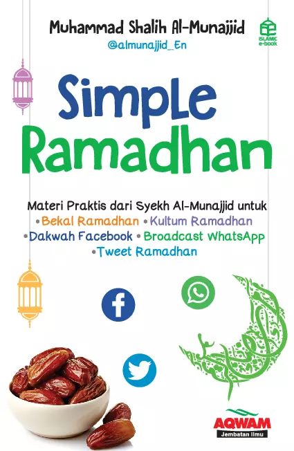 Sinopsis Buku: Simple Ramadhan Buku *Simple Ramadhan* adalah panduan praktis dan komprehensif yang ditulis oleh Syekh Muhammad Shalih Al-Munajjid, yang bertujuan memberikan bekal spiritual dan ilmu pengetahuan bagi umat Muslim menjelang dan selama bulan suci Ramadhan. Buku ini mengandung berbagai topik penting yang berkaitan dengan persiapan menyambut Ramadhan, adab dan keutamaan berpuasa, serta cara memperoleh manfaat maksimal dari bulan suci ini. Buku ini membahas bagaimana seharusnya kita menyambut Ramadhan, termasuk larangan mengawali puasa sebelumnya, pentingnya memperhatikan terbitnya hilal, serta cara menentukan masuknya bulan Ramadhan. Di sini juga dijelaskan niat puasa, keutamaan puasa, dan adab-adab yang harus diperhatikan seorang berpuasa. Selain itu, buku ini juga menjelaskan tentang pahala puasa, dampak positif puasa bagi hati, serta bagaimana akhlak seorang yang berpuasa. Tidak hanya itu, buku ini juga memberikan informasi mengenai cara mendidik anak-anak untuk berpuasa, serta berbagai kiat agar anak-anak bisa berpuasa dengan semangat dan penuh kebahagiaan. Selain itu, buku ini juga menyampaikan pentingnya memperbaiki diri di akhir Ramadhan, serta menghindari sikap malas dan berlebihan dalam beribadah. Selain topik tentang puasa, buku ini juga menyajikan informasi tentang hukum-hukum seputar Idul Fitri, termasuk cara menentukan hari raya, sunnah-sunnah dalam hari raya, dan keharusan berbuka ketika melihat hilal. Buku ini juga menjelaskan tentang zakat, termasuk hukum zakat mal, zakat penghasilan, zakat properti, dan zakat saham, serta cara mengeluarkan zakat secara benar. Buku ini sangat cocok untuk digunakan sebagai bahan kultum Ramadhan, dakwah melalui media sosial, atau sebagai bekal untuk meningkatkan ketaatan dan keimanan dalam bulan suci Ramadhan. *Simple Ramadhan* dirancang agar mudah dipahami dan praktis, sehingga bisa menjadi panduan bagi semua umat Muslim dalam menjalani bulan suci dengan penuh keimanan, ketaatan, dan kebahagiaan.