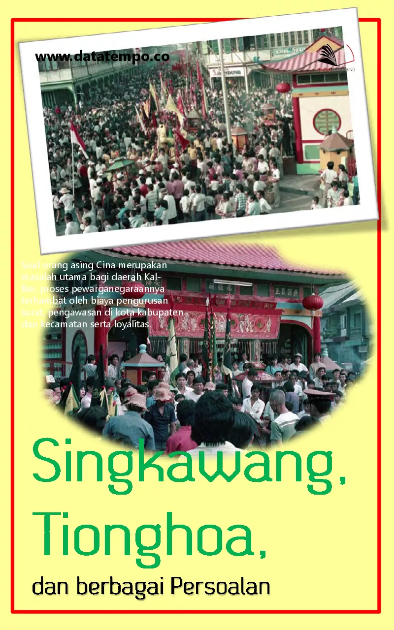 Soal orang asing Cina merupakan masalah utama bagi daerah Kal Bar proses pewarganegaraannya terhambat oleh biaya pengurusan surat pengawasan di kota kabupaten dan kecamatan serta loyalitas