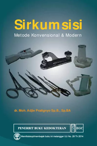Sirkumsisi adalah prosedur bedah terbanyak yang dilakukan di seluruh dunia dan telah dimulai sejak berabad abad lalu Teknik pelaksanaannya telah berevolusi dari cara konvensional atau manual hingga penggunaan alat alat bantu yang praktis dan nyaman baik bagi operator maupun pasien bahkan sirkumsisi dapat dilaksanakan tanpa perlu penjahitan sutureless circumcision Selain itu teknik pembiusan juga sudah maju Pembiusan dapat dilakukan secara lokal dengan atau tanpa jarum atau pengolesan krim anestesi secara topikal Berbeda dari buku sirkumsisi yang telah ada penulis berusaha menampilkan semua teknik sirkumsisi sehingga pembaca dapat memilih cara yang paling tepat untuk pelaksanaan sirkumsisi Buku ini juga menyampaikan berbagai komplikasi yang mungkin terjadi dan cara mengatasinya Diharapkan buku ini dapat bermanfaat atau menambah wawasan bagi para praktisi sirkumsisi sehingga sirkumsisi menjadi lebih nyaman bagi pelaksana dan pasien serta mencapai keberhasilan yang tinggi