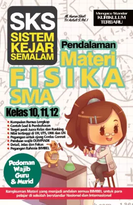 Sinopsis Buku: Buku *SKS Pendalaman Materi Fisika SMA Kelas 10, 11, 12* ini dirancang untuk menjadi panduan belajar yang komprehensif dan terarah bagi siswa SMA yang ingin mendalami konsep-konsep fisika secara mendalam. Buku ini mengandung materi yang disusun secara sistematik, terstruktur, dan berdasarkan kurikulum nasional, dengan memperhatikan metode pembelajaran yang inovatif dan mudah dipahami. Isi buku terdiri dari 14 bab utama yang mencakup topik-topik utama dalam fisika, seperti *Besaran dan Satuan*, *Gerak Lurus*, *Hukum Newton*, *Usaha dan Energi*, *Momentum dan Impuls*, *Fluida Statis dan Dinamis*, *Suhu dan Kalor*, *Magnet dan Listrik*, *Optika Geometri*, *Fisika Modern*, *Dualisme Gelombang*, *Arus dan Tegangan Bolak-Balik*, *Pemuaian Zat Padat*, serta *Aturan Angka Penting*. Setiap bab dilengkapi dengan latihan soal untuk memperkuat pemahaman siswa. Buku ini juga menyajikan penjelasan tentang besaran vektor dan skalar, serta metode penjumlahan dan pengurangan vektor secara grafis dan analitis. Selain itu, buku ini juga membahas aturan angka penting dan aturan dalam operasi perkalian dan pembagian, yang sangat penting dalam kegiatan pengukuran dan analisis data dalam fisika. Dengan penyajian yang jelas, terstruktur, dan mendukung pemahaman konseptual, buku ini sangat cocok sebagai referensi utama bagi siswa SMA yang ingin meningkatkan kemampuan akademiknya, baik dalam ujian sekolah maupun kompetisi seperti *Cerdas Cermat* maupun *Olimpiade Fisika*. Dengan mempelajari buku ini, siswa dapat memperoleh pemahaman yang lebih luas dan mendalam tentang fisika, serta meningkatkan kemampuan berpikir kritis dan analitis.