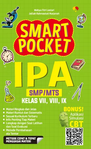 Buku smart pocket ini diperuntukkan bagi siswa SMP yang memerlukan referensi dalam mata pelajaran IPA Dalam buku ini terdapat materi tiap bab dan soal evaluasi tiap bab Buku ini mencakup kelas VII VIII dan IX Dalam buku ini semua materi dibuat ringkas dan padat sesuai kebutuhan Buku ini merupakan salah satu buku yang cukup efektif sebagai pendamping siswa karena sudah mencakup semua kelas dan dapat digunakan untuk semester 1 dan semester 2