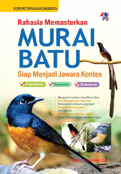 Sinopsis Buku: Buku ini membahas secara mendalam tentang burung Murai Batu, salah satu burung berkicau yang terkenal karena kemerduan suaranya. Buku ini ditulis oleh Handi Gunawan S.Pt, yang merupakan seorang ahli dan penggemar burung yang berpengalaman. Buku ini mencakup berbagai topik penting terkait perawatan, pelatihan, dan pengembangan kualitas suara burung Murai Batu. Isi buku ini terdiri dari beberapa bagian yang membahas berbagai aspek penting dalam pengelolaan dan pemeliharaan Murai Batu. Mulai dari penjelasan tentang karakteristik fisik dan habitat alami burung ini, hingga panduan praktis dalam memperbaiki suara, menjaga kesehatan, dan mencegah berbagai masalah yang sering terjadi, seperti serak, ngelowo, dan dampak dari pakan berlebihan. Buku ini juga menjelaskan pentingnya penjemuran dan cara membersihkan sangkar secara benar. Selain itu, buku ini juga membahas tentang nilai ekonomi dan popularitas Murai Batu dalam dunia kontes burung kicau, serta cara mengenali dan menghindari burung dopingan. Buku ini sangat cocok bagi para penggemar burung, pemula, maupun penghobi yang ingin meningkatkan pengetahuan dan keterampilan dalam merawat dan memelihara Murai Batu secara optimal. Dengan informasi yang terstruktur dan jelas, buku ini menjadi panduan lengkap bagi siapa pun yang tertarik pada dunia burung berkicau khususnya Murai Batu.