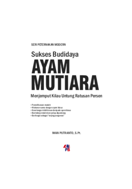 Sinopsis Buku: Buku ini memberikan panduan lengkap dan mendalam tentang budidaya ayam mutiara, salah satu jenis ayam hias yang memiliki nilai ekonomi tinggi dan potensi bisnis yang menjanjikan. Dalam buku ini, pembaca akan memperoleh wawasan mengenai prospek bisnis ayam mutiara, mulai dari manfaat memelihara ayam hias hingga strategi efektif dalam mengelola usaha peternakan. Buku ini tidak hanya membahas aspek bisnis, tetapi juga menyajikan informasi tentang karakteristik ayam mutiara, variasi jenisnya, serta cara merawat dan memelihara ayam hias secara optimal. Selain itu, buku ini juga menyertakan contoh analisis ekonomi budidaya ayam mutiara, yang membantu pembaca dalam memperkirakan keuntungan dan kerugian yang mungkin terjadi. Dengan bahasa yang jelas dan penyajian yang terstruktur, buku ini menjadi sumber referensi yang bermanfaat bagi para peternak pemula maupun yang ingin mengembangkan usaha peternakan ayam hias secara profesional.