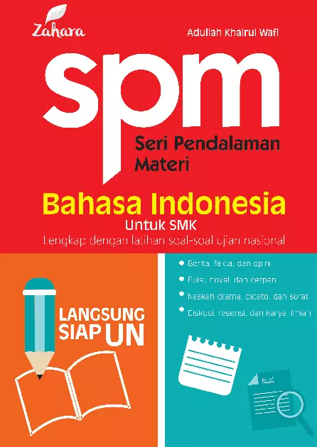 Sinopsis Singkat Buku "SPM Bahasa Indonesia untuk SMK" Buku ini merupakan panduan belajar Bahasa Indonesia yang dirancang khusus untuk siswa Sekolah Menengah Kejuruan (SMK). Buku ini terdiri dari beberapa bab yang membahas berbagai aspek penting dalam bahasa Indonesia, seperti paragraf, puisi, cerpen, novel, hikayat, surat, berita, fakta, opini, pidato, resensi, ringkasan, dan simpulan. Setiap bab dilengkapi dengan penjelasan teori, contoh, dan pembahasan yang mendetail untuk memudahkan pemahaman dan penerapan dalam kehidupan sehari-hari. Buku ini juga mencakup penjelasan mengenai struktur dan susunan karya tulis, serta cara menulis resensi, ringkasan, dan simpulan secara efektif. Selain itu, buku ini menyediakan latihan soal dan contoh pembahasan untuk memperkuat pemahaman siswa. Buku ini ditujukan untuk membantu siswa SMK dalam meningkatkan kemampuan berbahasa Indonesia, baik secara teoritis maupun praktis, sebagai persiapan menghadapi ujian Sekolah Menengah Kejuruan (SPM). Isi Buku: 1. BAB I – PARAGRAF - Kata - Frasa - Kalimat - Paragraf 2. BAB II – BERITA, FAKTA, DAN OPINI - Berita - Fakta dan Opini 3. BAB III – PIDATO 4. BAB IV – KARYA SASTRA - Puisi - Cerpen dan Novel - Hikayat 5. BAB V – RESENSI, RINGKASAN, DAN SIMPULAN - Resensi - Ringkasan - Simpulan 6. BAB VI – SUSUNAN KARYA TULIS - Pengertian Karya Tulis - Susunan Karya Tulis 7. BAB VII – KARYA SASTRA (berulang, mungkin kesalahan penulisan) - Puisi - Cerpen dan Novel - Hikayat 8. BAB VIII – SURAT Buku ini juga dilengkapi dengan contoh dan pembahasan untuk setiap bab, sehingga memudahkan pembaca dalam memahami konsep dan menerapkannya dalam praktik. Kesimpulan: Buku ini merupakan sumber belajar yang komprehensif dan terstruktur, yang membantu siswa SMK dalam memahami dan menguasai berbagai aspek Bahasa Indonesia, baik dalam bentuk karya sastra maupun karya tulis. Buku ini sangat cocok digunakan sebagai bahan pembelajaran dan persiapan ujian SPM.