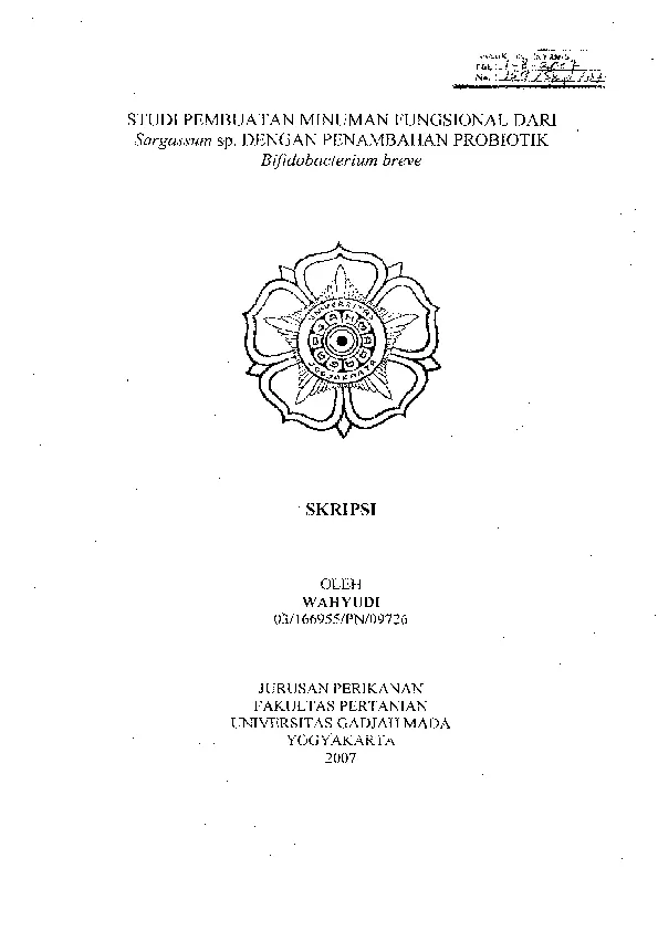 menggimakan melode DPPH radical scavenging activity gambar 2 2 Berdasarkan grafik tersebut terlihaT babwa senyawa antioksidan mampu mengikat radikal bebas DPPH dengan kecenderungan yang naik seiring berlambalmya wakiu Aklivilas antioksidan yang tahan terhadap panas tersebut disebabkan oleh adanya beberapa senyawa antioksidaji yang talian panas seperti alkaloid dan beberapa senyawa lain yang tidak tcridcntifikasi scpcrti yang dilaporkan olch Khurniasari dkk 2004 100 55 1 o CG I 40 38 20 30 60 90 Waktu Inkubasi menrt PI 60 oC P2 70 oC ps ioo Tanpa PpmanassrH ViT CSmM P3 SOoC P4 90 oC Gambar 2 2 Aktivitas antioksidanSargassian sp pada berbagai suhu pemanasan B Minuman Fungsiona Pangan flingsional merupakan pangan yang secara alami atau melalui proses mengandiing satu atau lebih senyawa yang berdasarkan hasil kajian ilmiah memiliki fungsi fisiologis tertentu yang bermanfaat bagi kesehatan Pangan fungsional mempunyai ciri sensoris berupa penampakan warna tekstur dan cita rasa yang bisa diterima oleh konsumen Pangan fungsional juga tidak boleh menyebabkan kontraindikasi dan tidak memberikan efek samping terhadap metabolisme zat gizi lainnya jika digunakan pada jumlah penggunaan yang dianjurkan Badan Pengawas Obat dan Makanan 2001 Produk minuman fungsional memiliki beberapa macam bentuk seperti jus sari buah serbuk minuman cepat larut atau serbuk minuman instan dan dalam bentuk teh herbal Produk produk minuman dalam bentuk bentuk tersebut sudah banyak beredar di pasaran Minuman fungsional yang dibuat dalam berbagai bentuk tersebut dibuat oleh produsen dengan berbagai alasan seperti tingkat kepraktisan konsumsi dan efisiensi distribusi Winarti 2005