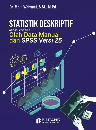Sinopsis Buku: Buku ini membahas konsep dasar dan penerapan statistik deskriptif, serta pengenalan aplikasi SPSS versi 25. Buku ini terdiri dari beberapa bagian utama, yaitu Pendahuluan, Penyajian Data, Distribusi Frekuensi, Ukuran Pemusatan dan Ukuran Letak, Ukuran Penyebaran Data, serta Pengenalan SPSS Versi 25. Dalam bagian Pendahuluan, dibahas pengertian statistik, statistika, dan statistik deskriptif, serta beberapa istilah yang sering digunakan dalam statistika. Bagian Penyajian Data menjelaskan cara menyajikan data dalam bentuk tulisan, tabel, diagram batang, garis, lingkaran, dan titik. Bagian Distribusi Frekuensi menjelaskan pengertian, tujuan, serta langkah-langkah penyusunan distribusi frekuensi, termasuk distribusi frekuensi relatif. Selanjutnya, bagian Ukuran Pemusatan dan Ukuran Letak menjelaskan berbagai ukuran yang digunakan untuk menggambarkan pusat dan letak data, seperti rata-rata, median, modus, kuartil, dan desil. Bagian Ukuran Penyebaran Data membahas ukuran seperti range, simpangan rata-rata, standar deviasi, skewness, dan kurtosis. Di bagian terakhir, buku ini memperkenalkan SPSS versi 25, termasuk cara menginstal, membuka program, dan penggunaan toolbar. Buku ini dirancang untuk membantu pembaca memahami konsep statistik deskriptif secara mendalam, serta mengaplikasikannya dalam penelitian menggunakan SPSS.