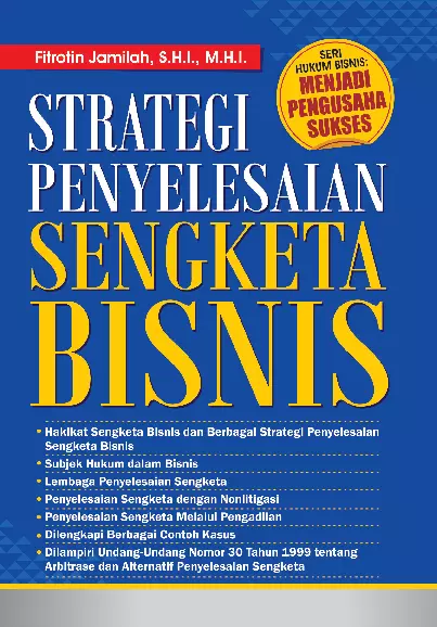 Sinopsis Buku: Buku *Strategi Penyelesaian Sengketa Bisnis* ini disusun oleh Fitrotin Jamilah, S.H.I., M.H.I., dengan penyunting Tim Medpress, dan diterbitkan oleh Penulis Medpress Digital pada tahun 2014. Buku ini merupakan referensi penting bagi para pelaku bisnis, baik dalam skala kecil maupun besar, yang ingin memahami dan menghadapi sengketa bisnis secara efektif dan efisien. Dalam dunia bisnis, sengketa adalah hal yang hampir setiap hari terjadi, di berbagai tempat dan negara. Sengketa bisnis tidak hanya mengganggu hubungan antar pihak, tetapi juga berpotensi menghambat pertumbuhan bisnis, produktivitas, dan kesejahteraan sosial. Buku ini bertujuan untuk membantu para pelaku bisnis menyelesaikan sengketa secara segera dan terarah, agar dampak negatif yang mungkin timbul dapat diminimalkan. Buku ini mengupas berbagai kasus sengketa bisnis yang terjadi di Indonesia, serta strategi-strategi penyelesaian yang dapat diterapkan. Buku ini juga menjelaskan bahwa penyelesaian sengketa tidak selalu harus melalui proses hukum formal yang seringkali dianggap rumit dan lambat. Terdapat konsep *win-win solution* yang menekankan pada pencapaian kesepakatan yang saling menguntungkan bagi kedua belah pihak. Dengan cara yang praktis dan berbasis kasus nyata, buku ini memberikan wawasan mendalam tentang bagaimana para pelaku bisnis dapat menemukan jalan keluar yang bijak, sehat, dan berkelanjutan. Buku ini sangat relevan bagi pengusaha, manajer, dan siapa saja yang ingin membangun hubungan bisnis yang harmonis dan berkelanjutan.