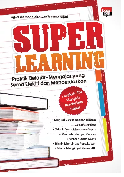 Apakah Anda seorang pelajar atau mahasiswa yang berharap bisa membaca sekaligus memahami sebuah text book tebal dalam waktu lebih cepat Atau apakah Anda seorang profesional yang ingin berprestasi dalam setiap jabatan Anda Namun masalah yang Anda hadapi Anda tidak tahu bagaimana caranya belajar Anda tak perlu pergi ke sekolah mahal untuk bisa menjadi pembelajar yang lebih cepat hebat dan efektif Sebab hanya dengan berbekal buku super ini Anda sudah bisa menjadi Super Learner pembelajar super Melalui buku super ini Anda bisa memperoleh segudang teknik membaca cepat speed reading mencatat dengan cerdas metode mind map menghafal atau mengingat bahan pelajaran percakapan dan lain sebagainya sehingga menjadikan Anda sebagai orang dengan kecerdasan luar biasa Dengan buku ini buktikan sendiri betapa mudahnya Anda bisa mengerti memahami serta mengingat kembali informasi yang Anda peroleh Jadilah Super Learner dengan Super Learning