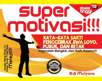 Berpikir positif tentang segala sesuatu akan mengantarmu meraih hasil hasil positif dari segala sesuatu itu Sebaliknya jika berpikir negatif tentang segala sesuatu niscaya engkau akan selalu menuai hal hal negatif dari segala sesuatu itu Edi Ungkapan ungkapan dahsyat super bijak dalam buku ini laksana mata air kekuatan jiwa bagi setiap pembacanya Demikian menyentuh dan menyejukkan kalbu Buku super kata kata motivasi ini dikemas sedemikian sederhana dan mudahnya agar Anda dapat membacanya kapan saja dan di mana saja sehingga dapat seketika terinspirasi oleh muatan muatan motivasi yang dikandungnya Baca buku ini tangkap maknanya lalu tempatkan hasil permenungan Anda sebagai prinsip hidup