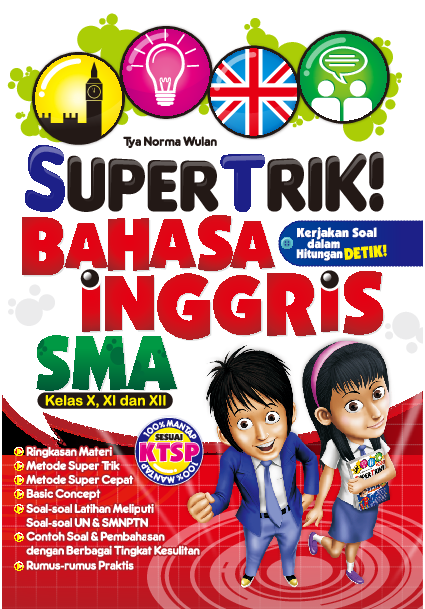 Sinopsis Buku: Super Trik! Bahasa Inggris SMA Buku ini dirancang untuk membantu siswa SMA memahami dan menguasai tenses dalam bahasa Inggris secara efektif dan mudah. Buku ini menyajikan berbagai bentuk tenses, termasuk simple, perfect, dan progressive, beserta penjelasan yang jelas dan contoh soal yang relevan. Penulis menjelaskan penggunaan keterangan waktu, struktur kalimat, dan perbedaan antara bentuk-bentuk tenses yang sering dipakai dalam kehidupan sehari-hari. Buku ini juga menyertakan penjelasan tentang passive voice dan struktur kalimat yang tepat untuk menyampaikan makna yang jelas. Dengan pendekatan yang praktis dan mudah dipahami, buku ini menjadi panduan yang ideal untuk meningkatkan pemahaman dan kemampuan berbahasa Inggris siswa SMA.