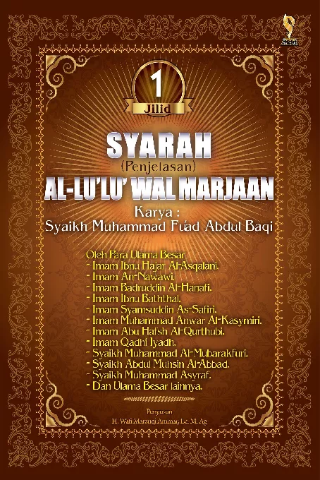 Kitab Al Lu lu Wa Al Marjaan Jilid 1 adalah kitab yang disusun oleh Syaikh Muhammad Fu ad Abdul Baqi Nama lengkap kitab ini Al Lu lu Wa Al Marjaan Fiimaa Ittafaqa Alaihi Asy Syaikhan Kitab ini mengumpulkan Hadis Hadis shahih yang disepakati dua orang imam yaitu Imam Abu Abdillah Muhammad bin Ismail Al Bukhari dan Imam Muslim bin Hajjaj An Naisaburi Mengenai kedudukan Hadis yang disepakati keshahihannya Imam As Suyuthi dalam Tadrib Ar Rawi berkata Hadis shahih ada bermacam macam Yang paling tinggi tingkatannya adalah yang disepakati oleh Al Bukhari dan Muslim dalam kedua kitab Shahihnya Kemudian yang diriwayatkan oleh Al Bukhari sendirian Dan seterusnya Jadi kedudukan Hadis yang disepakati keshahihannya oleh Imam Al Bukhari dan Muslim merupakan Hadis shahih yang tingkat keshahihannya paling tinggi Karena itu banyak kaum muslimin menjadikannya sebagai rujukan dalam banyak taklim mereka Syarah penjelasan Kitab Al Lu lu Wa Al Marjaan ini didasarkan dan diambil dari kitab syarah Hadis para ulama terkemuka yaitu 1 Fathul Bari Syarah Shahih Al Bukhari karya tulis Imam Al Hafidz Ibnu Hajar Al Asqalani 2 Al Minhaj Syarah Shahih Muslim bin Al Hajjaj karya Imam Muhyiddin An Nawawi 3 Umdatul Qari Syarah Shahih Al Bukhari karya Badruddin Al Aini Al Hanafi 4 Syarah Shahih Al Bukhari karya Ibnu Baththal dengan lama lengkap Abul Hasan Ali bin Khalaf bin Abdil Malik Al Qurthubi 5 Syarah Shahih Al Bukhari Syamsuddin As Safiiri 6 Faidhul Baari Syarah Shahih Al Bukhari karya Muhammad Anwar Syah Al Kasymiri 7 Al Mufhim Limaa Asykala Min Talkhish Kitabi Muslim karya Imam Abu Hafsh Umar bin Ibrahim Al Qurthubi 8 Ikmaal Al Mu lim Syarah Shahih Muslim karya Qadhi Iyadh 9 Tuhfatul Ahwadzi Bisyarhi Jami At Tirmidzi karya Muhammad bin Abdurrahman Al Mubarakfuri 10 Syarah Sunan Abi Dawud karya Syaikh Abdul Muhsin Al Abbad 11 Aunul Ma bud Syarah Sunan Abi Dawud karya Muhammad Asyraf bin Amir bin Ali bin Haidar Al Adhim Abadi Dan syarah syarah lainnya Buku ini insya Allah menjadi referensi yang sangat penting dalam kajian Hadis utamanya yang berbahasa Indonesia Selamat membaca