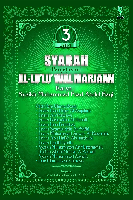Kitab Al Lu lu Wa Al Marjaan Jilid 3 adalah kitab yang disusun oleh Syaikh Muhammad Fu ad Abdul Baqi Nama lengkap kitab ini Al Lu lu Wa Al Marjaan Fiimaa Ittafaqa Alaihi Asy Syaikhan Kitab ini mengumpulkan Hadis Hadis shahih yang disepakati dua orang imam yaitu Imam Abu Abdillah Muhammad bin Ismail Al Bukhari dan Imam Muslim bin Hajjaj An Naisaburi Mengenai kedudukan Hadis yang disepakati keshahihannya Imam As Suyuthi dalam Tadrib Ar Rawi berkata Hadis shahih ada bermacam macam Yang paling tinggi tingkatannya adalah yang disepakati oleh Al Bukhari dan Muslim dalam kedua kitab Shahihnya Kemudian yang diriwayatkan oleh Al Bukhari sendirian Dan seterusnya Jadi kedudukan Hadis yang disepakati keshahihannya oleh Imam Al Bukhari dan Muslim merupakan Hadis shahih yang tingkat keshahihannya paling tinggi Karena itu banyak kaum muslimin menjadikannya sebagai rujukan dalam banyak taklim mereka Syarah penjelasan Kitab Al Lu lu Wa Al Marjaan ini didasarkan dan diambil dari kitab syarah Hadis para ulama terkemuka yaitu 1 Fathul Bari Syarah Shahih Al Bukhari karya tulis Imam Al Hafidz Ibnu Hajar Al Asqalani 2 Al Minhaj Syarah Shahih Muslim bin Al Hajjaj karya Imam Muhyiddin An Nawawi 3 Umdatul Qari Syarah Shahih Al Bukhari karya Badruddin Al Aini Al Hanafi 4 Syarah Shahih Al Bukhari karya Ibnu Baththal dengan lama lengkap Abul Hasan Ali bin Khalaf bin Abdil Malik Al Qurthubi 5 Syarah Shahih Al Bukhari Syamsuddin As Safiiri 6 Faidhul Baari Syarah Shahih Al Bukhari karya Muhammad Anwar Syah Al Kasymiri 7 Al Mufhim Limaa Asykala Min Talkhish Kitabi Muslim karya Imam Abu Hafsh Umar bin Ibrahim Al Qurthubi 8 Ikmaal Al Mu lim Syarah Shahih Muslim karya Qadhi Iyadh 9 Tuhfatul Ahwadzi Bisyarhi Jami At Tirmidzi karya Muhammad bin Abdurrahman Al Mubarakfuri 10 Syarah Sunan Abi Dawud karya Syaikh Abdul Muhsin Al Abbad 11 Aunul Ma bud Syarah Sunan Abi Dawud karya Muhammad Asyraf bin Amir bin Ali bin Haidar Al Adhim Abadi Dan syarah syarah lainnya Buku ini insya Allah menjadi referensi yang sangat penting dalam kajian Hadis utamanya yang berbahasa Indonesia Selamat membaca