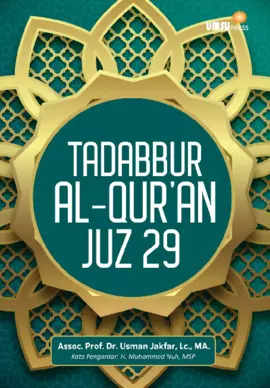 Sinopsis: Buku ini merupakan buku *tadabbur* yang membahas Surah Al-Qur’an Juz 29 secara mendalam. Penulis, Assoc. Prof. Dr. H. Usman Jakfar, Lc. MA, berusaha menggali makna setiap ayat dalam Surah Juz 29, kemudian menghubungkannya dengan ayat-ayat lain dalam Al-Qur’an, hadis, perkataan para sahabat, serta pandangan para ulama tafsir seperti Ibn Kats?r, Al-Sa’d?, Al-R?z?, Al-Mawardi, Ibn al-Jauz?, Al-Shinqithi, Al-Shobuni, dan Abdul Rahman Hasan Habnakah al-Maidani. Dalam penjelasannya, penulis tidak memaksakan hubungan antara satu ayat dengan ayat lainnya, namun juga tidak mempermudah-mudah dalam memahami makna ayat-ayat tersebut. Di bagian akhir setiap penggalan dari Surah, penulis mencoba mengambil pelajaran atau *ibrah* yang dapat diambil dari ayat-ayat yang telah dibahas. Tujuan utama dari buku ini adalah untuk membantu pembaca lebih mendalami dan menghayati makna-makna ayat yang terdapat dalam Al-Qur’an al-Karim, karena memang menghayati dan mentadabburi Al-Qur’an adalah kewajiban setiap umat Islam. Buku ini dilengkapi dengan informasi penerbit, kontak, dan referensi kitab tafsir yang digunakan sebagai sumber bacaan.