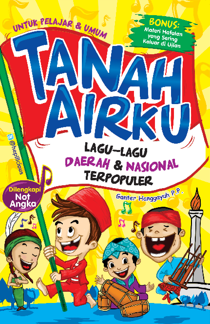 Sinopsis Buku: Buku ini mempersembahkan kumpulan lagu daerah dan lagu nasional dari berbagai daerah di Indonesia, yang mencerminkan keragaman budaya dan identitas nasional. Dalam buku ini, pembaca akan menemukan berbagai lagu yang berasal dari provinsi seperti Sumatra Utara, Riau, DIY (Daerah Istimewa Yogyakarta), Jawa Barat, Jawa Tengah, Maluku, Sulawesi Utara, Nusa Tenggara Timur, Papua, dan lainnya. Setiap lagu disertai dengan nama daerah asalnya, memberikan gambaran tentang keunikan dan kekhasan budaya masing-masing daerah. Lagu-lagu yang disajikan dalam buku ini tidak hanya memiliki nilai seni yang tinggi, tetapi juga berfungsi sebagai perwujudan dari nilai-nilai kehidupan, sejarah, dan tradisi yang melekat dalam masyarakat setempat. Selain itu, buku ini juga mencakup lagu nasional Indonesia, yang menjadi simbol dari persatuan dan kesatuan bangsa. Buku ini terdiri dari dua bagian utama: *Lagu Daerah* dan *Lagu Nasional*. Dalam bagian *Lagu Daerah*, pembaca akan menemukan berbagai lagu seperti *Ampar-Ampar Pisang*, *Ande-Ande Lumut*, *Bubuy Bulan*, hingga *Gundul Pacul*, yang semuanya memiliki ciri khas masing-masing. Sementara itu, bagian *Lagu Nasional* mencakup lagu yang menjadi representasi kebangsaan Indonesia, seperti *Tanah Airku* yang ditulis oleh Ganter Hanggayuh P.P. Dengan memperkenalkan lagu-lagu daerah dan nasional, buku ini bertujuan untuk melestarikan dan memperkenalkan kekayaan budaya Indonesia kepada pembaca, baik sebagai sumber belajar maupun sebagai sarana pengenalan akan keberagaman dan keindahan budaya Indonesia.
