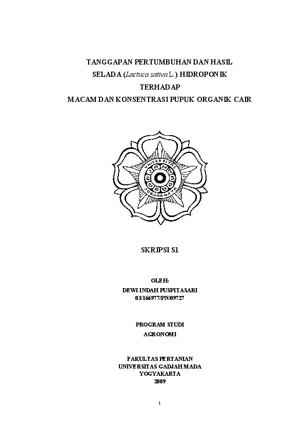 Tanggapan Pertumbuhan Dan Hasil Selada (Lactuca Sativa L.) Hidroponik Terhadap Macam Dan Konsentrasi Pupuk Organik Cair Dewi Indah Puspitasari Fakultas Pertanian UGM Konten Lokal Konten Lokal 31187