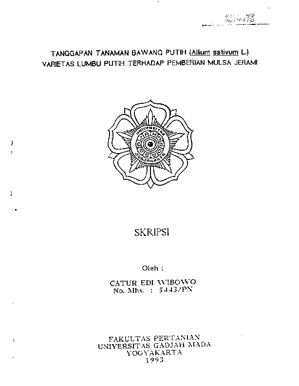 Tanggapan Tanaman Bawang Putih (Allium Sativum L.) Varietas Lumbu Putih Terhdadappemberian Mulsa Jerami Catur Edi Wibowo Fakultas Pertanian UGM Konten Lokal Konten Lokal 31406