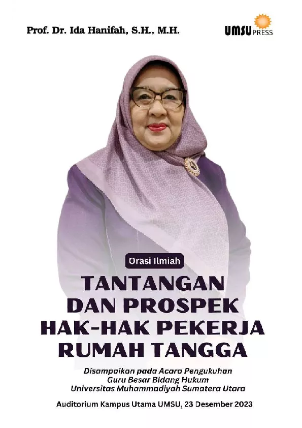 Orasi ilmiah ini disusun bertujuan untuk memperkaya literasi pembaca terkait dunia tenaga kerja khususnya pekerja rumah tangga yang berkaitan dengan hukum yang melindungi profesi tersebut Dalam praktiknya pekerja rumah tangga di Indonesia masih belum mendapatkan hak hak dan payung hukum yang jelas dibandingkan dengan praktik praktik hukum tentang pekerja rumah tangga di negara lain