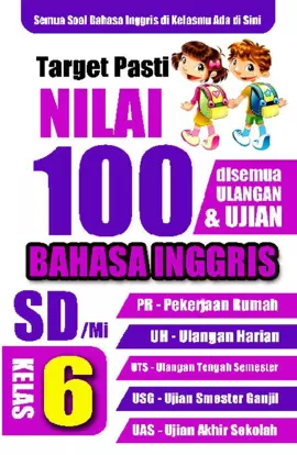 Sinopsis Buku: Buku ini merupakan panduan belajar Bahasa Inggris yang dirancang khusus untuk siswa kelas 6 SD. Buku ini mencakup berbagai soal ulangan harian, ulangan tengah semester, ulangan semester ganjil, serta ujian kenaikan kelas. Materi yang disajikan meliputi topik-topik seperti *Favorite Food*, *Recreation*, *Activity*, *Person’s Character*, *May And Legend*, *Holiday*, serta berbagai jenis makanan khas dari berbagai daerah di Indonesia dan dunia. Soal-soal dalam buku ini dirancang untuk membantu siswa memperkuat pemahaman dan kemampuan berbahasa Inggris, sehingga memudahkan mereka dalam meraih nilai 100. Buku ini juga dilengkapi dengan penjelasan yang jelas dan terstruktur, serta bisa digunakan sebagai bahan latihan mandiri maupun bimbingan belajar. Dengan mempelajari semua soal dalam buku ini, siswa dapat meningkatkan kemampuan berbahasa Inggris secara menyeluruh dan efektif.