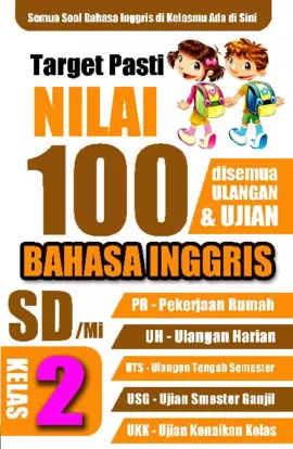 Sinopsis Buku: Buku ini merupakan panduan belajar Bahasa Inggris yang dirancang khusus untuk siswa kelas 2. Buku ini mencakup berbagai materi yang relevan dengan kurikulum sekolah, seperti ulangan harian yang mencakup topik-topik seperti *My Family*, *My Class Room*, *My House*, *Numbers*, *Animals*, *Possessive Pronoun*, *Location and Thing*, *Address*, *Personal Identity*, *Sign and Color*, dan lainnya. Selain itu, buku ini juga menyediakan soal-soal ulangan tengah semester dan ujian semester ganjil untuk membantu siswa mempersiapkan diri secara menyeluruh. Buku ini dilengkapi dengan berbagai jenis soal yang beragam, mulai dari soal pilihan ganda hingga soal lainnya yang memfasilitasi pemahaman siswa terhadap struktur dan kosakata Bahasa Inggris. Buku ini juga berisi latihan-latihan yang relevan dengan kehidupan sehari-hari, seperti mengenali keluarga, alamat, benda, hewan, dan identitas pribadi. Dengan menguasai materi yang disajikan dalam buku ini, siswa dapat meningkatkan kemampuan berbahasa Inggris secara efektif dan mencapai nilai yang maksimal. Buku ini menjadi teman belajar yang ideal untuk membantu siswa memahami dan menguasai Bahasa Inggris dengan mudah dan menyenangkan.