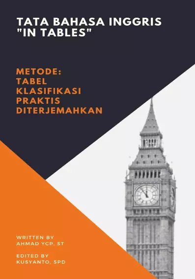 Ketika mempelajari tata bahasa inggris seringkali kita menemui kesulitan dalam hal menghafal materinya karena sangat banyak persyaratan persyaratan yang ditemukan di dalam tata bahasa inggris Bahasa terdiri dari kata dan kalimat dengan membuat klasifikasi terhadap kalimat dan kata kata serta menyusunnya di dalam bentuk tabel tabel maka akan lebih memudahkan untuk mempelajari dan menghafal tata bahasa inggris Buku ini mengetengahkan materi tata bahasa inggris berbentuk klasifikasi dan tabel dari kalimat dan kata kata Semoga buku ini akan menjadi prasarana yang memudahkan mempelajari salah satu bahasa dunia dan bahasa ilmu pengetahuan yakni bahasa inggris