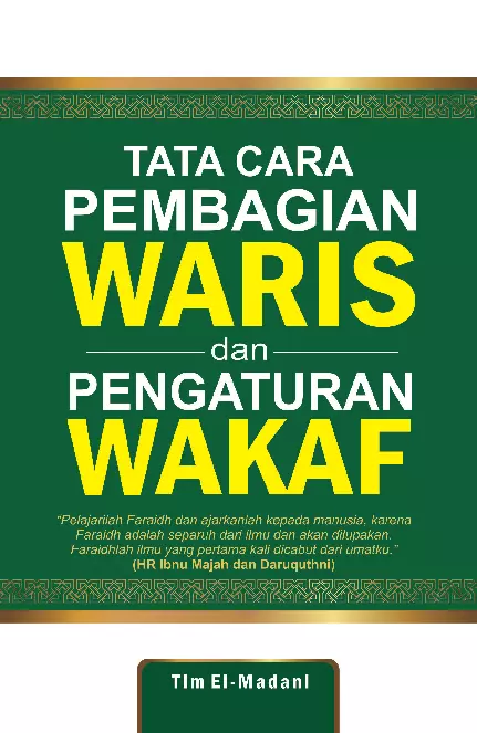 Bapak Joyo seorang kaya raya meninggal dunia meninggalkan seorang istri tanpa mempunyai seorang anak pun Namun ia memiliki 2 orang anak angkat seorang laki laki dan seorang perempuan Sementara itu ia juga masih memiliki ibu kandung dan 4 orang adik 3 di antaranya laki laki dan seorang lagi perempuan Siapakah di antara keluarganya yang berhak mendapatkan warisan Dan berapa besar pembagiannya Tahukah Anda faraidh ilmu pembagian waris merupakan salah satu cabang ilmu fiqh yang dianggap paling penting oleh para ulama tinggi kedudukannya dan besar pahalanya Oleh karena pentingnya bahkan Allah swt sendiri yang menentukan takarannya yang didapat oleh setiap ahli waris Nah jika ilmu faraidh benar benar digunakan sebagai pegangan pastinya akan menjauhkan kita dari perselisihan waris karena faraidh telah memenuhi rasa keadilan Seperti halnya faraidh wakaf merupakan salah satu amalan istimewa yang pahalanya akan terus mengalir meski telah wafat Dan sangat menyedihkan sekali bila ternyata sebagian harta yang kita wakafkan belum sesuai dengan syariat dan menggugurkan pahala yang seharusnya kita terima lantaran ketidaktahuan Buku ini bisa menjadi panduan Anda dalam urusan faraidh dan wakaf Anda tidak perlu khawatir jika sebelumnya belum pernah tahu tentang faraidh atau wakaf Karena buku ini akan mengupas segala hal yang patut Anda pahami mengenai faraidh dan wakaf yang sesuai dengan syariat Islam
