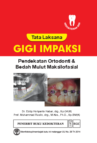Tata Laksana Gigi Impaksi Pendekatan Ortodonti dan bedah Mulut Maksilofasial adalah buku pertama di Indonesia yang disusun secara kolaborasi oleh ahli ortodonsi dan bedah mulut maksilofasial dalam hal tata laksanan gigi impaksi Pendekatan kolaborasi ini memudahkan mahasiswa kedokteran gigi dalam mempertajam analisis dan keterampilan praktik kliniknya Buku ini membahas gigi impaksi mulai dari diagnosis hingga komplikasinya