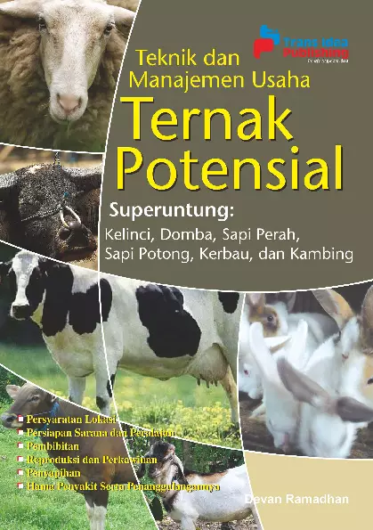 Sinopsis Buku: Buku ini membahas teknik dan manajemen usaha ternak potensial yang memiliki peluang keuntungan tinggi di Indonesia. Buku ini menyajikan enam jenis bisnis ternak yang sangat menjanjikan, yaitu: bisnis ternak kelinci, domba, sapi perah, sapi potong, kerbau, dan kambing. Setiap bab menjelaskan secara rinci berbagai aspek penting dalam pengelolaan usaha ternak, mulai dari persiapan lokasi, pembibitan, pemeliharaan, hingga panen dan pasca panen. Selain itu, buku ini juga membahas tentang hama, penyakit, serta cara penanggulangannya, sehingga membantu pembaca dalam mengurangi risiko kerugian. Buku ini juga memperkenalkan peluang usaha yang tidak hanya terbatas pada olahan daging, tetapi juga mencakup budidaya hewan hias seperti kelinci hias. Dengan informasi yang terstruktur dan lengkap, buku ini menjadi sumber referensi yang bermanfaat bagi siapa saja yang ingin memulai atau mengembangkan usaha peternakan di Indonesia.