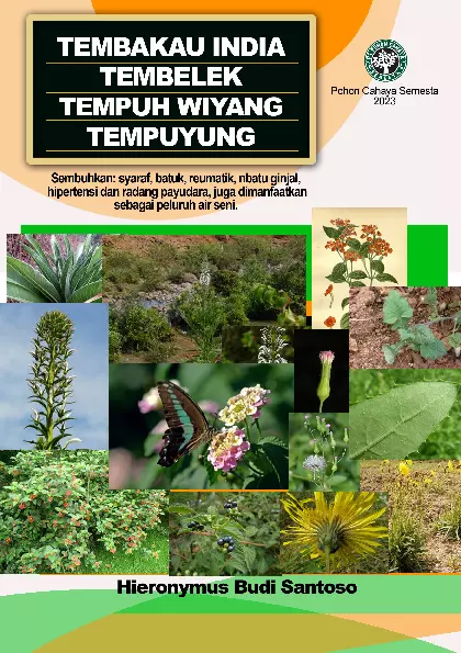 Dalam kepustakaan tercatat Indonesia memiliki lebih 1 500 jenis tanaman yang digunakan untuk mengobati penyakit Namun sampai hari ini hanya sebagian yang telah dimanfaatkan dan dibudidayakan dan sebagian lagi sampai sama sekali belum tersentuh Kesempatan masih telah terbuka untuk melacak lebih jauh adanya tanaman obat yang tumbuh liar di berbagai pelosok