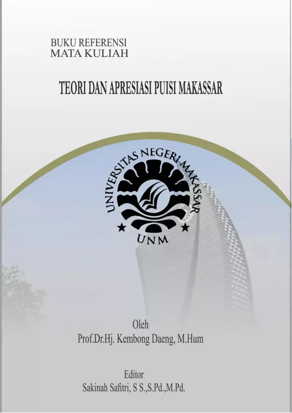 Sinopsis Buku: Buku ini membahas secara mendalam tentang hakikat apresiasi puisi, termasuk pengertian apresiasi, pengertian puisi, dan langkah-langkah mengapresiasi puisi Makassar. Buku ini juga menyajikan berbagai ragam puisi yang ada dalam bahasa daerah Makassar, seperti Dowangang, Paruntuk Kana, Kelong, Dondo dan Rapang, Aru, PakkioK Bunting, serta Puisi Makassar secara umum. Setiap bab menjelaskan unsur-unsur pembentuk puisi, struktur, dan makna yang terkandung dalam karya sastra tersebut. Selain itu, buku ini juga memberikan panduan praktis mengenai cara mengapresiasi puisi Makassar, yang dapat menjadi bekal bagi pembaca untuk mengembangkan kemampuan kritis dan kreatif dalam memahami karya sastra daerah. Buku ini dirancang untuk memperkaya pengetahuan dan pemahaman pembaca terkait puisi Makassar, serta meningkatkan rasa kecintaan terhadap budaya dan sastra lokal. Buku ini merupakan bahan ajar utama mata kuliah *“Teori dan Apresiasi Puisi Makassar”* yang diajarkan di Jurusan Pendidikan Bahasa dan Sastra Daerah (PBSD) Fakultas Bahasa dan Sastra Universitas Negeri Makassar (UNM). Buku ini juga dapat menjadi referensi bagi para peneliti, pengajar, dan pembaca yang tertarik dalam dunia sastra dan budaya Makassar.