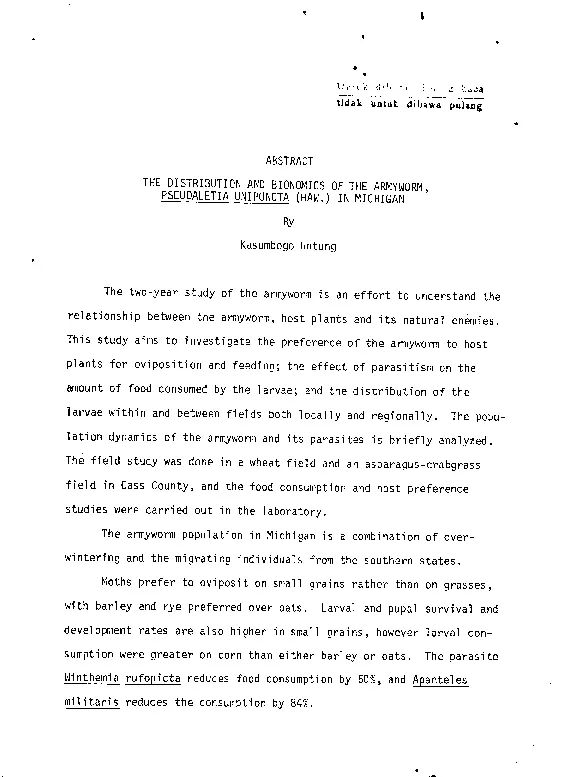 The Distribution And Bionomics Of The Armyworm, Pseudaletia Unifuncta (Haw.) In Michigan Kasumbogo Untung Fakultas Pertanian UGM Konten Lokal Konten Lokal 48341