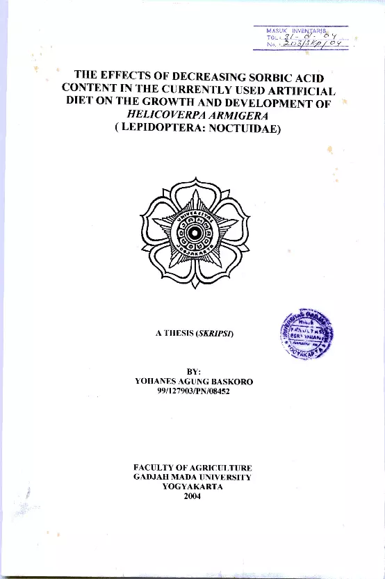 The Effects Of Decreasing Sorbic Acid Content In The Currently Used Artificial Diet On The Growth And Development Of Helicoverpa Armigera (Lepidoptera: Noctuidae) Yohanes Agung Baskoro Fakultas Pertanian UGM Konten Lokal Konten Lokal 31440