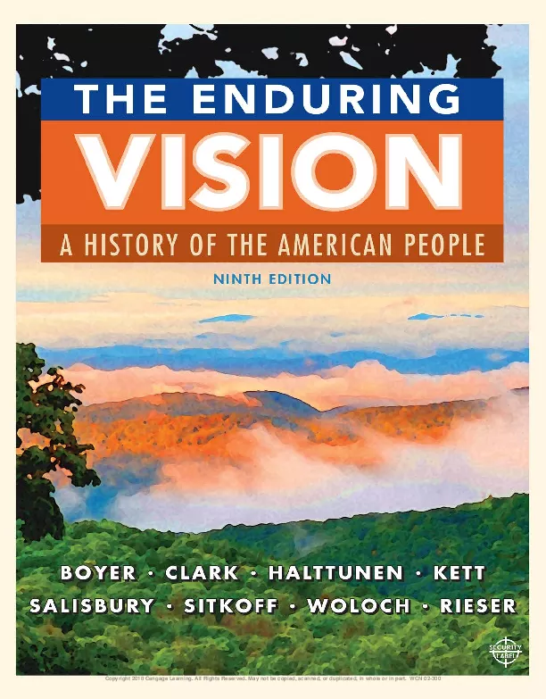 THE ENDURING VISION s engaging narrative integrates political social and cultural history within a chronological framework Known for its focus on the environment and the land Boyer et al s text is also praised for its innovative coverage of cultural history public health and medicine and the American West including Native American history The ninth edition maintains these strengths while enhancing coverage of women s history and incorporating new scholarship A thoroughly redesigned last chapter discusses topics such as income inequality and mass incarceration while bringing the discussion up to date with coverage of the 2016 presidential campaign The ninth edition also incorporates new features that support learning Each section begins with a historical question new conclusions include summaries organized around each of the chapter questions Available in the following split options THE ENDURING VISION 9th Edition Complete Volume 1 To 1877 and Volume 2 Since 1865
