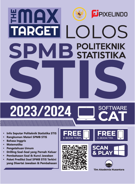 Sekolah Tinggi Ilmu Statistika STIS adalah salah satu sekolah tinggi ikatan dinas yang diselenggarakan oleh negara Sekolah tinggi ini bertujuan untuk mencetak sumber daya manusia yang dibutuhkan untuk mengisi kedudukan di setiap departemen di negara Indonesia Bagi siswa siswi SMA SMK yang akan lulus atau yang sudah lulus STIS merupakan pilihan yang patut dipertimbangkan Apalagi setelah lulus dari sekolah ikatan dinas secara otomatis bisa mendapatkan pekerjaan dari negara Jadi tidak perlu susah susah mencari pekerjaan Buku ini kami terbitkan untuk membantu siswa siswi SMA SMK yang ingin melanjutkan studinya ke STIS Di buku ini ada beberapa paket latihan soal yang bisa dikerjakan sebagai persiapan untuk mengikuti seleksi masuk STIS tahun 2023 2024 Soal soal latihan yang ada disesuaikan dengan soal soal yang pernah dikeluarkan pada seleksi masuk STIS tahuntahun lalu Adanya kunci jawaban dan pembahasan di setiap akhir dari latihan soal dapat membantu siswa siswi mengetahui penjelasan lengkap atas jawaban soal soal Bagi siswa siswi yang telah mantap untuk melanjutkan studinya ke STIS buku ini bisa dijadikan pilihan untuk mempersiapkan ujian seleksi masuk STIS Semoga buku ini dapat membantu siswa siswi untuk mewujudkan cita cita mengabdi pada negara Indonesia