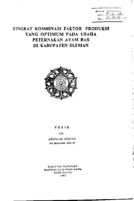 Tingkat Kombinasi Faktor Produksi Yang Optimum Pada Usaha Peternakan Ayam Ras Di Kabupaten Sleman Abdullah Ghazali Fakultas Pertanian UGM Konten Lokal Konten Lokal 31360