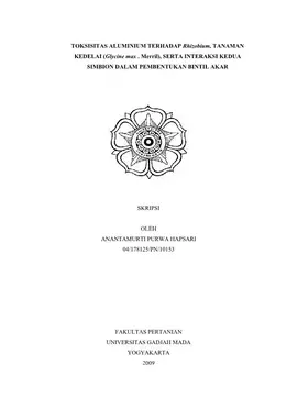 Toksisitas Aluminium Terhadap Rhizobium, Tanaman Kedelai (Glycine Max . Merril), Serta Interaksi Kedua Simbion Dalam Pembentukan Bintil Akar Anantamurti Purwa Hapsari Fakultas Pertanian UGM Konten Lokal Konten Lokal 31162