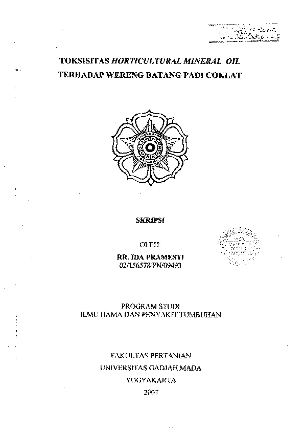 IV HASIL DAN PEMBAHASAN A Toksisitas HMO terhadap nimfa instar ketiga N lugens Dari Gambar 1 terlihat bahwa mortalitas N lugens terjadi pada hari pertama sampai hari kelima Mortalitas N lugens tertinggi terjadi pada pengamatan hari pertama dengan rata rata 2 5 3 75 ekor per hari pada konsentrasi 0 5 2 Pada pengamatan hari kedua dan ketiga mortalitasnya sudah mulai menurun yaitu berkisar antara 1 5 2 25 dan 1 75 2 ekor per hari sedangkan pada pengamatan hari keempat dan kelima mortalitasnya berkisar antara 0 75 1 25 dan 0 25 1 ekor per hari Pada konsentrasi 0 125 dan 0 25 mortalitas tertinggi terjadi pada pengamatan hari pertama dan hari kedua yaitu sebanyak 1 5 2 ekor per hari selanjutnya pada pengamatan hari ketiga sampai hari kelima jumJah N lugens yang mati sudah mulai berkurang hanya berkisar antara 0 5 1 5 ekor per hari Pada hari keenam dan ketujuh jumlah nimfa yang mati sangat sedikit dengan rata rata 0 25 0 5 ekor per hari pada konsentrasi 0 25 2 Kontrol 0 13 A 0 25 0 50 1 2 2 3 4 5 6 Pengamatan pada hari ke Gambar 1 Pengaruh konsentrasi HMO terhadap mortalitas harian nimfa instar ketiga Nilaparvata lugens Berdasarkan hasil pengujian Tabel 1 terlihat bahwa HMO bersifat toksik terhadap nimfa instar ketiga N lugens yang ditunjukkan dengan adanya mortalitas nimfa Konsentrasi HMO berbanding lurus dengan mortalitas nimfa sehingga semakin tinggi konsentrasi yang diaplikasikan maka mortalitas nimfa akan semakin tinggi pula Pengaruh HMO terhadap mortalitas nimfa instar ketiga N lugens pada konsentrasi 0 125 0 25 0 5 1 dan 2 menunjukkan pengaruh yang berbeda nyata apabila dibandingkan dengan kontrol Secara statistik antara konsentrasi 0 125 0 25 dan 0 5 tidak menunjukkan hasil 12 MM