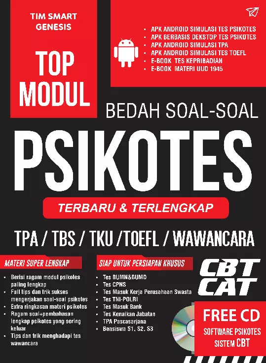 Sinopsis Buku: Buku ini merupakan panduan lengkap dan terstruktur untuk membantu Anda mempersiapkan diri secara efektif menghadapi tes psikotes yang sering digunakan oleh instansi pemerintahan, perusahaan swasta, dan lembaga lain dalam proses rekrutmen karyawan. Buku ini dirancang untuk memberikan pemahaman mendalam tentang berbagai aspek psikis yang dinilai dalam tes psikotes, seperti kemampuan verbal, numerik, logika, dan penalaran. Isi buku ini terdiri dari berbagai materi yang disusun secara sistematis, meliputi: 1. Materi Kemampuan Verbal - Tes Sinonim - Tes Antonim - Tes Analogi - Tes Pemahaman Wacana 2. Materi Numerik - Barisan dan Deret Aritmetika & Geometri - Aritmetika dan Aljabar - Matematika dalam Cerita 3. Materi Penalaran Logis - Tes Penalaran Logis - Tes Penalaran Analitis 4. Paket Soal - Berbagai paket soal yang disusun untuk melatih kemampuan dan meningkatkan kecepatan dalam menjawab soal, dilengkapi dengan pembahasan yang jelas dan mudah dipahami. Buku ini juga mencakup soal-soal yang sering muncul dalam tes psikotes, sehingga sangat membantu untuk memperkuat pemahaman dan kesiapan menghadapi berbagai jenis tes yang diterapkan oleh berbagai lembaga. Buku ini cocok untuk pelajar, mahasiswa, dan calon karyawan yang ingin meningkatkan kemampuan psikotes secara cepat dan tepat.