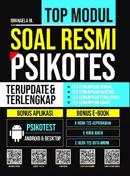 Buku ini berisi berbagai psikotes seperti Tes Kemampuan Verbal Tes Kemampuan Numerik Tes Kemampuan Penalaran dan Tes Kemampuan Umum B Indonesia B Inggris TWK Selain itu buku ini juga dengan materi singkat mengenai berbagai materi psikotes Ada pula Bonus Aplikasi Android Desktop dan Bonus E Book untuk menambah wawasan dan latihan soal yang bisa dilakukan dengan cara scan barcode yang sudah tertera di buku ini Tunggu apa lagi Dapatkan segera buku ini untuk hasil psikotes yang terbaik