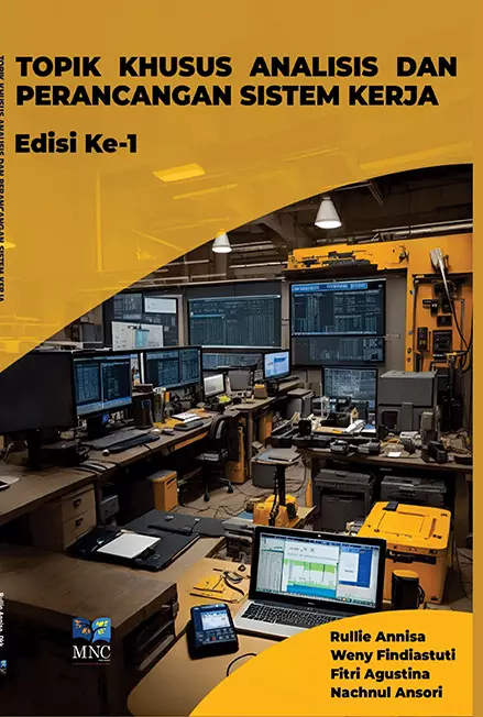 Sinopsis Singkat Buku: Topik Khusus Analisis dan Perancangan Sistem Kerja *(Untuk Cover Belakang Buku)* Buku ini merupakan panduan komprehensif dalam analisis dan perancangan sistem kerja yang terstruktur dan berbasis prinsip-prinsip manajemen modern. Buku ini terdiri dari beberapa bab utama yang membahas berbagai aspek penting dalam meningkatkan produktivitas, mengelola beban kerja, serta menerapkan metode perbaikan berkelanjutan dengan pendekatan *Toyota Way*. Pada Bab 1, buku ini menjelaskan konsep produktivitas, pengaruhnya terhadap operasional perusahaan, dan pentingnya produktivitas dalam meningkatkan efisiensi dan kualitas kerja. Bab 2 membahas tentang *Toyota Production System* (TPS) dan prinsip-prinsip *Toyota Way*, termasuk pendekatan *pull system*, pemerataan beban kerja, serta budaya *stop and fix* untuk mencegah masalah sejak awal produksi. Bab ini juga menyajikan konsep-konsep seperti 5S, pengorganisasian tempat kerja, dan studi kasus untuk memperjelas penerapan prinsip-prinsip tersebut. Selanjutnya, Bab 3 memperdalam tentang implementasi perbaikan berkelanjutan dengan metode *A3 Report* dan pendekatan *Toyota Way* dalam pemecahan masalah. Bab 4 membahas analisis beban kerja, termasuk definisi beban kerja, faktor-faktor yang memengaruhinya, metode pengukuran beban kerja, serta hubungan antara beban kerja dan stres kerja. Di sini juga dijelaskan metode analisis seperti *WISN* yang digunakan untuk menetapkan standar aktivitas, menghitung faktor kelonggaran, dan menentukan kebutuhan staf. Buku ini juga menyajikan berbagai metode pengamatan dan analisis aktivitas kerja, serta pendekatan kontrol visual dan teknologi yang andal untuk meningkatkan kinerja dan kualitas kerja. Di akhir buku, terdapat daftar pustaka dan profil penulis sebagai tambahan informasi. Buku ini sangat relevan bagi para dosen, praktisi, dan mahasiswa di bidang Teknik Industri, Mesin, dan Mekatronika, yang ingin memahami dan menerapkan prinsip-prinsip manajemen dan perbaikan berkelanjutan dalam sistem kerja. Dengan struktur yang jelas dan materi yang praktis, buku ini dirancang untuk menjadi sumber referensi yang bermanfaat dalam pengembangan sistem kerja yang efektif dan efisien.