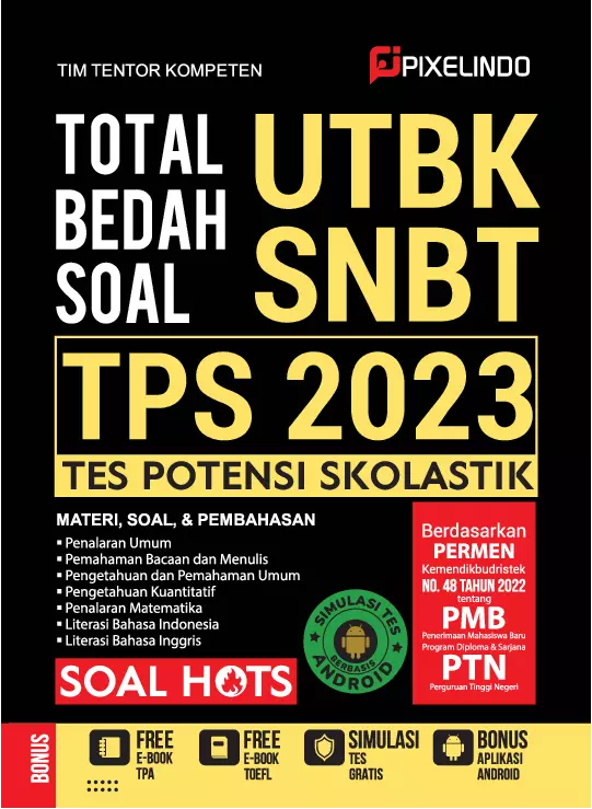 Persaingan masuk perguruan tinggi semakin ketat dan cermat sudah saatnya para calon mahasiswa me ngencangkan ikat pinggang agar dapat melaluinya dengan selamat Salah satu tes yang diujikan adalah Tes Potensi Skolastik TPS Tes ini diperuntukkan bagi calon mahasiswa yang akan mengikuti UTBK SNBT Tes Potensi Skolastik ini terdiri dari Potensi Kognitif Penalaran Matematika Literasi Bahasa Indonesia dan Literasi Bahasa Inggris Untuk bisa lolos dalam seleksi para calon mahasiswa harus mempersiapkan diri Salah satu langkah per siapannya adalah dengan rajin berlatih soal soal Buku yang disusun khusus bagi para calon mahasiswa ini adalah pilihan yang tepat karena di dalamnya terdapat paket drilling soal TPS beserta pembahasannya Tak hanya itu di dalam buku ini juga terdapat materi materi TPS yang dapat dibaca dan dipelajari Memiliki buku ini secara otomatis Anda juga akan mendapatkan bonus simulasi tes berbasis Android Free E Book TOEFL Free E Book TPA yang dapat diunduh melalui PC laptop atau gawai masing masing Dengan begitu Anda dapat belajar di mana saja dan kapan saja Anda pun akan semakin siap mengikuti UTBK SNBT Selamat belajar